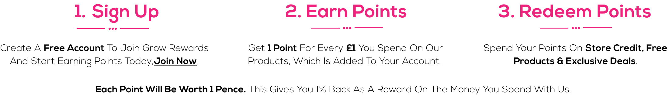 Get 1 point for every £1 you spend on our products, which is added to your account.
