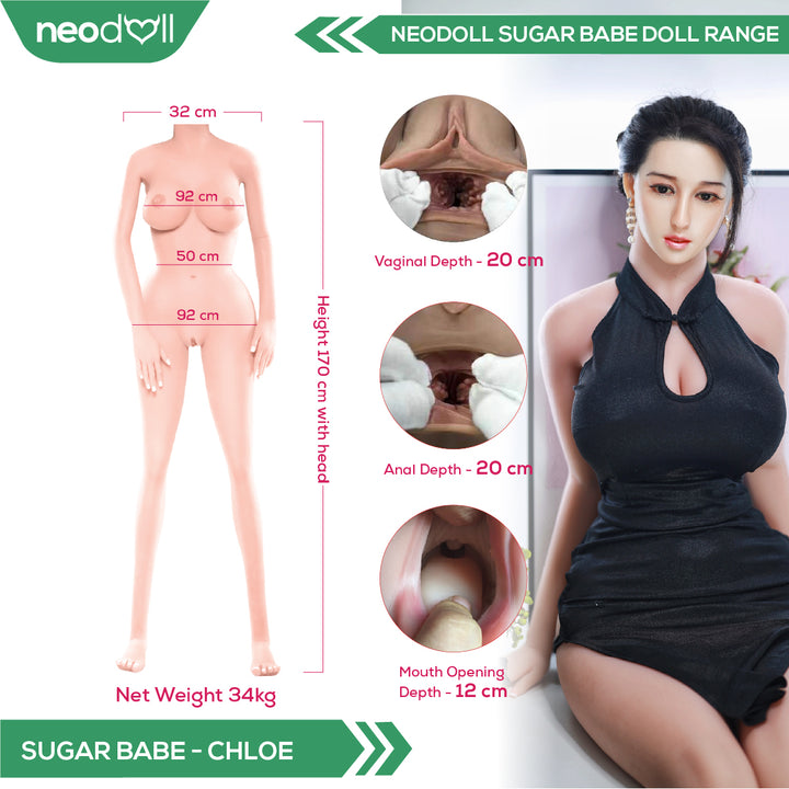 Neodoll Sugar babe - Chloe - Silicone TPE Hybrid Sex Doll - Gel Breast - Uterus - 170cm - Natural