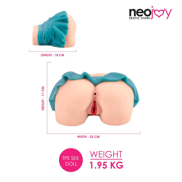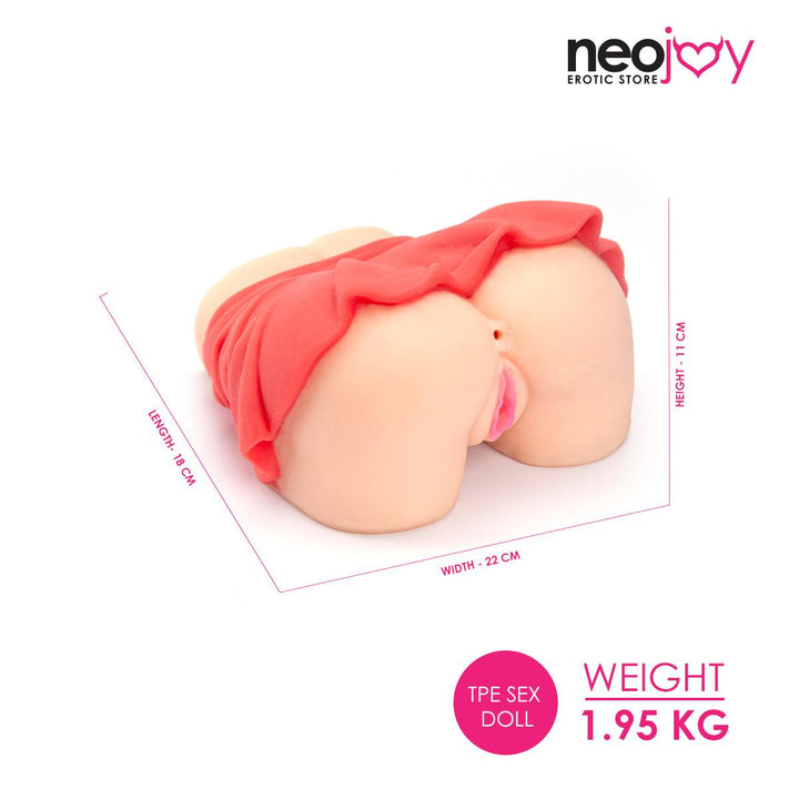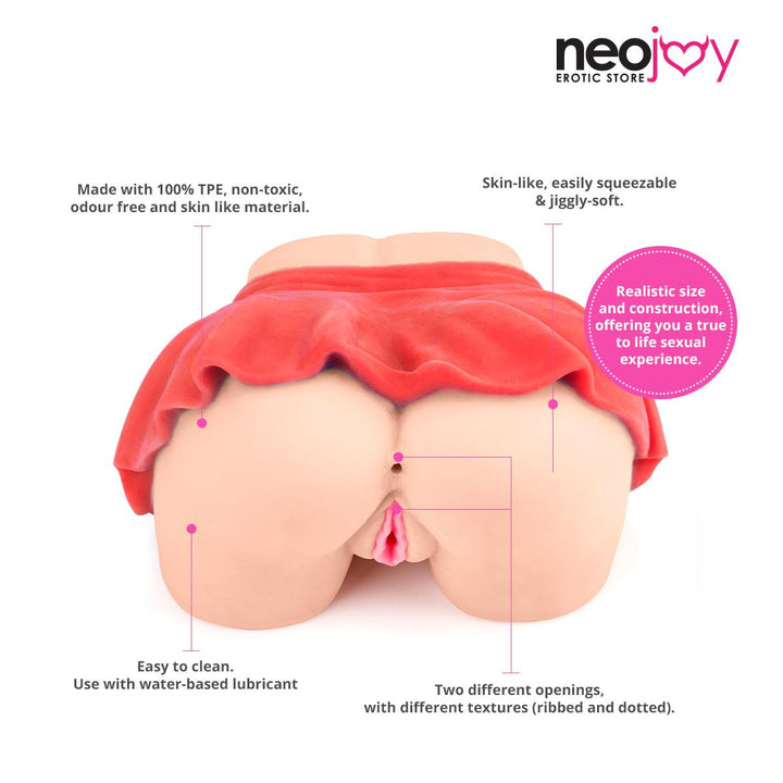 A realistic stroker, crafted with love and care, invites you to go at it doggie style. Grab her delicious cheeks, then plunge your manhood between the welcoming lips of her ribbed texture vagina. Switch from there to the extra tight anal hole, that will stretch for you without any complaints.